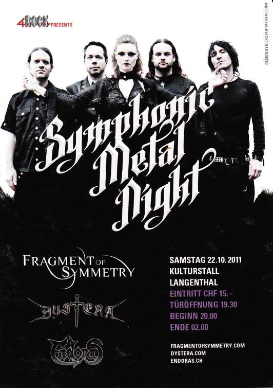 Symphonic Metal Night Sa., 22 Oktober, 2011 19:00 Langenthal (BE) Kulturstall Endoras Dystera Fragment of Symetry